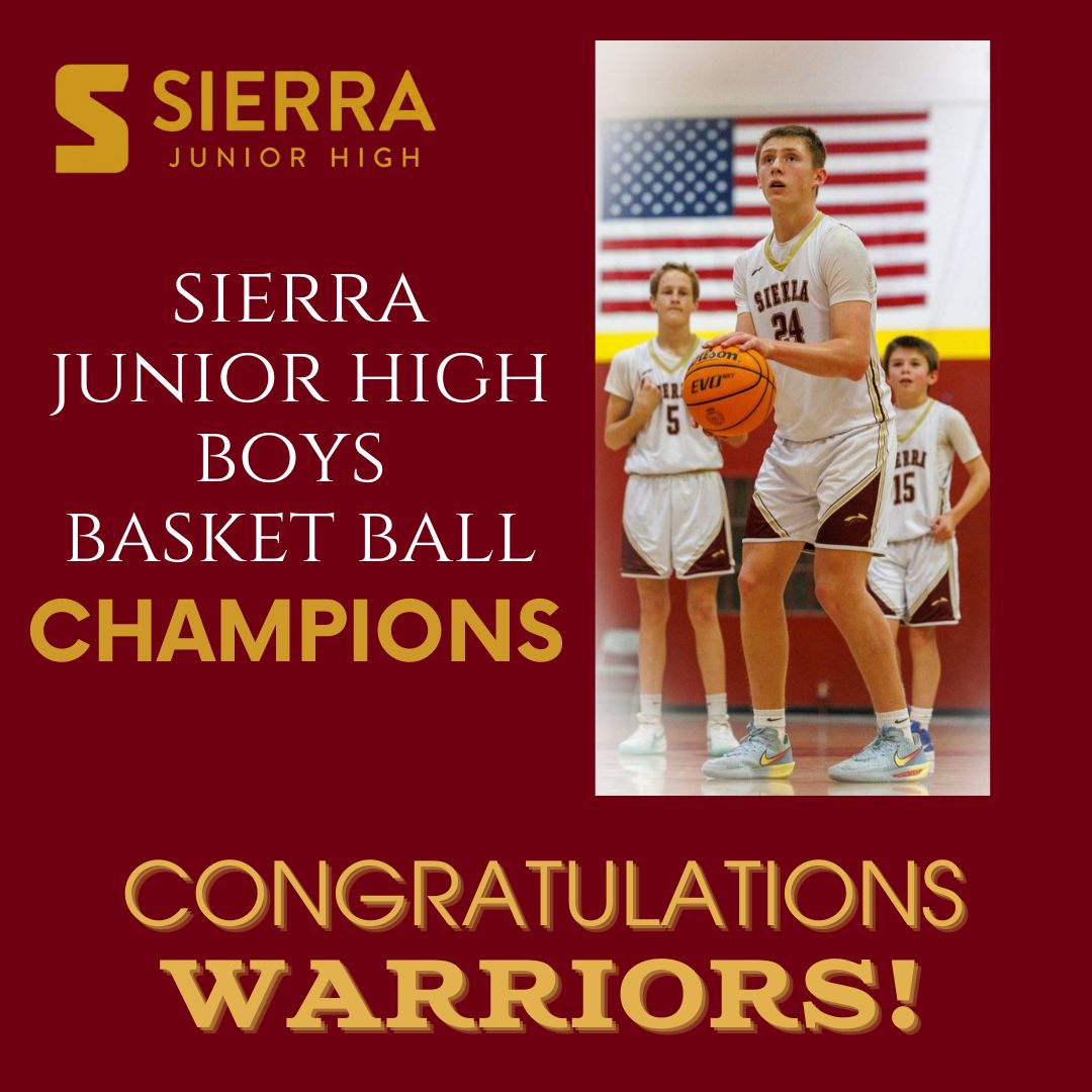 Congratulations to the Sierra Junior High School Boys Basketball team on their incredible championship win! Their hard work, dedication, and teamwork paid off, and the whole school community is bea...